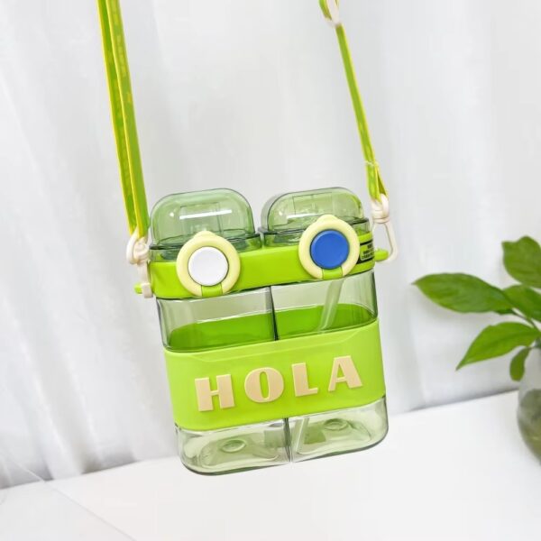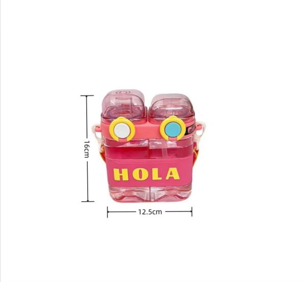 Cute 700ml Double Drink Water Bottle with Straw and Strap